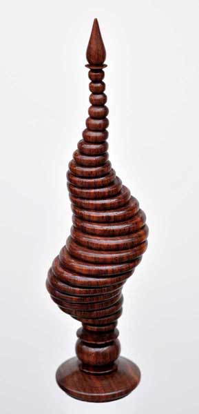 I couldn't get the idea of this spiral finial out of my head, what I saw was a horn, something between a Gazelle and a Kudu horn. A stepped spiral.
